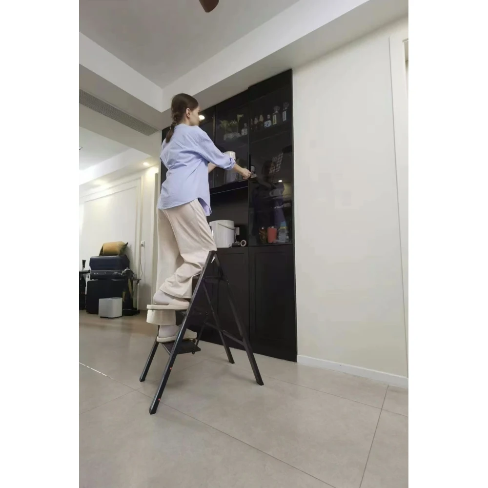 - [Space saving] The 3-step ladder is only 2 inches wide when folded, saving your space. Easy to carry, suitable for indoor or outdoor use. It can be folded tightly to fit in narrow places. When idle, it can lean against the wall or corner, can be placed under the bed or cupboard and stored