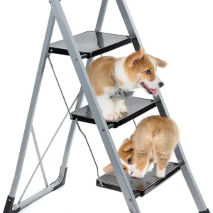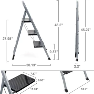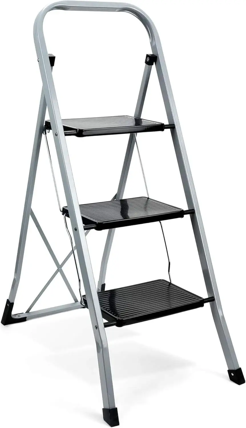 Non-Slip 3 Step Stool Folding Sturdy Steel Wide Step Ladder with Hand Grip and Locking Mechanism for Indoor Household Kitchens
